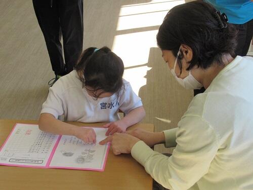 終わったら、一文字一文字、文字を指で確認しながら音読しました。