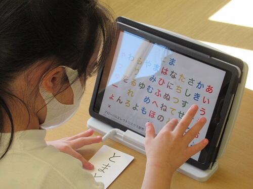 最後に、ipadのアプリを使って、今日学習したものの文字を五十音から探して言葉を完成させました。熱心に繰り返し繰り返し学習しました。できるたびに、歓声が上がっていました。