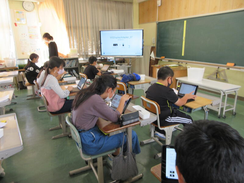 資料に書かれていることを読み取ったり、タブレットPCに文章を整理してまとめたりするなど、様々な力が必要となります。子どもたちもじっくりと考えながら集中して作業を進めていました。