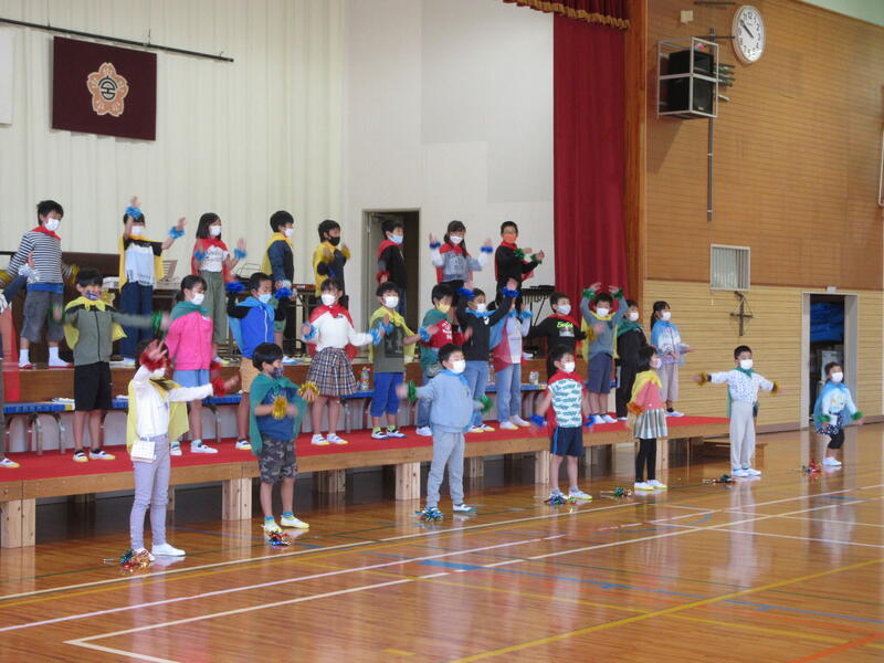 ツバメの動きをしながら曲に合わせて踊りました。子どもたち1人1人のカラフルな衣装も鮮やかでした。