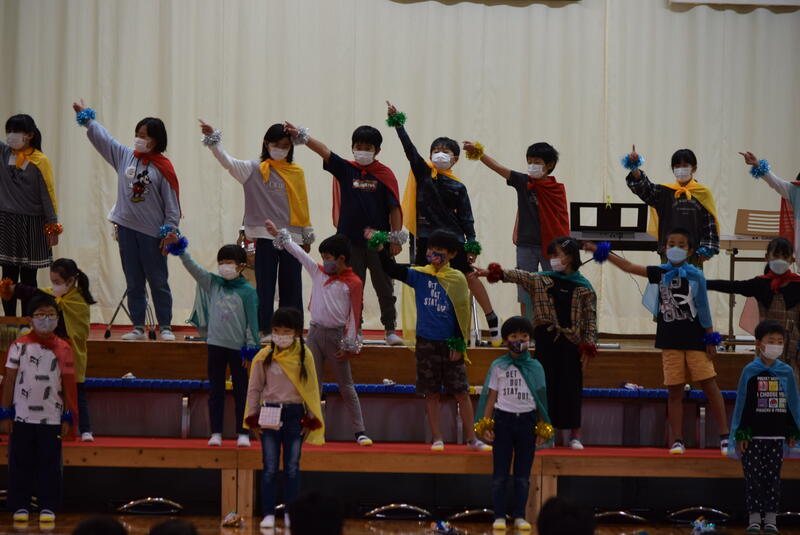 1~4年生は、大きな声で動きもしっかりつけながら発表をすることができました。