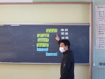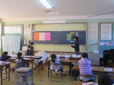 1年生は外国語のお勉強でした。クリスマスに関わる言葉を楽しく勉強しました。ALTが「アメリカではクリスマスにチキンは食べません。」と言うと、みんなびっくりしていました。