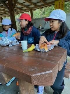 みんなでカレーを作って食べました。飯ごうで炊いたご飯は、普段食べるご飯とは違っておこげもあり、とてもおいしいです。大盛りのカレーをペロリと食べていました。