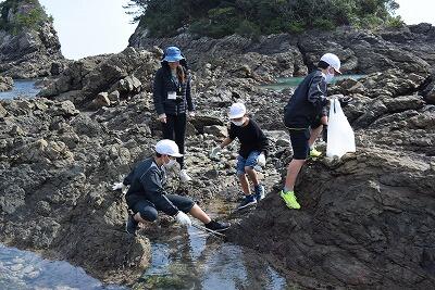 そのあとは、磯遊びをしました。ウニやカニ、ナマコを見つけて大喜びです。
