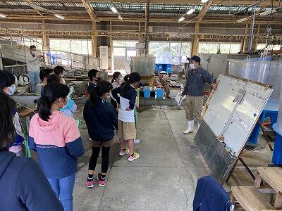 水産振興協会では、スライドで仕事の内容を学んだ後、実際に施設の中を見学しました。