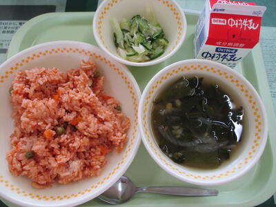 とてもおいしい「なすとひき肉のスパゲティ」と「きゅうりのさっぱりサラダ」が出来ました。地産地消給食の日にご協力いただきまして、本当にありがとうございます。おいしくいただきました!!