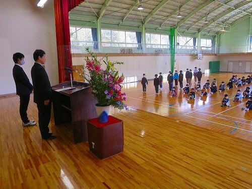 最後に、学級担任の発表を行いました。約束通り、子どもたちは、騒がずに静かに聞いていました。1年生は北林先生、2・3年生は今村先生、4年生は山下先生、5年生は林田先生、6年生は菊池先生です。