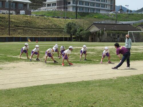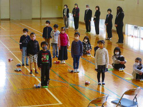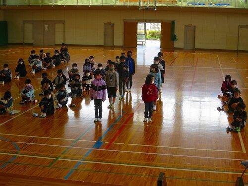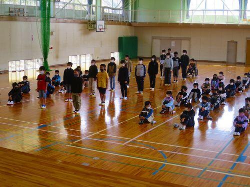 2年生の4時間目は、体育でした。体育は、1年生と合同ですが、まだ1年生が入学していないので今日は2年生だけで行いました。1・2年生の体育は、教頭先生と北林先生が授業を行います。みんな楽しそうに体を動かしていました。