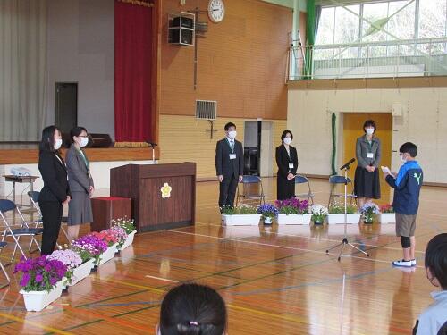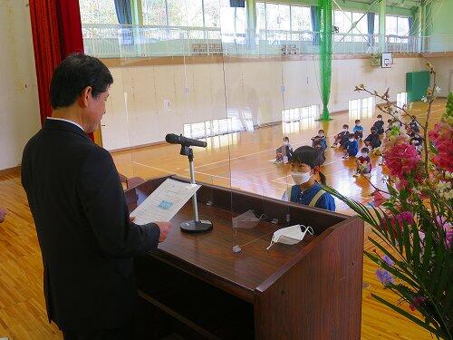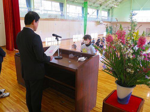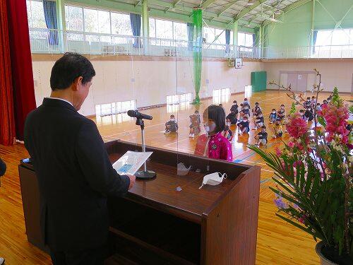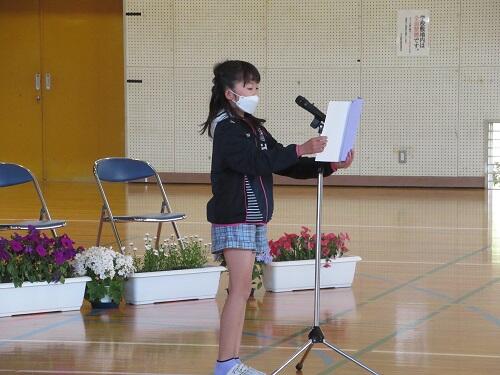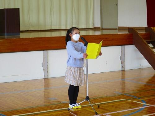 作文発表では、児童を代表して4年生の平川千聖さんが、今年度の抱負を発表しました。がんばりたいことを具体的に堂々と発表することができました。がんばってほしいです。