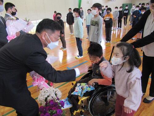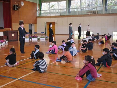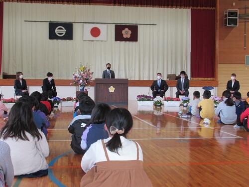 新任式の後、引き続き1学期の始業式を行いました。初めに、校長先生のお話がありました。令和4年度、児童にがんばってほしいこと(自分から進んで行動する)について、プレゼンを使っての説明がありました。全児童、話をしっかりと聞くことができていました。一年間、がんばってほしいものです。