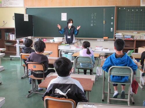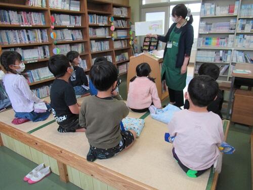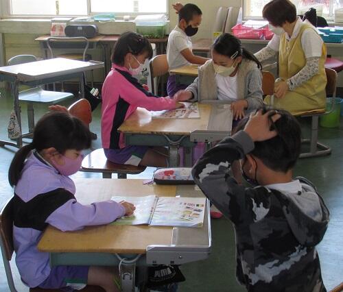 今年度も毎週木曜日に、町の図書活動推進員の戸髙先生が来てくださり、読み聞かせや図書のお世話をしてくださいます。3校時には、1年生が読み聞かせをしてもらいました。子どもたちは、戸髙先生の読み聞かせが大好きで、いつも楽しそうに見聞きしています。