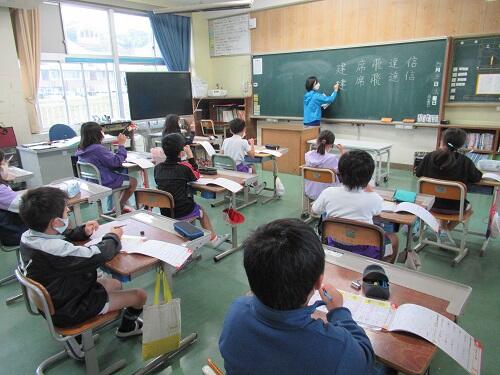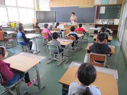 今年度から2・3年生は複式学級となり、昨年度の3年生の教室になります。2・3年生が同じ教室にいるのが不思議な感じがしますが、すぐに慣れてくれると思います。2年生の授業の多くは、昨年度の2年生教室で、複式解消の甲斐優香先生や教頭先生がすることになっています。