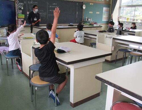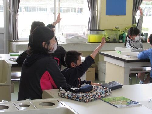 宮水小学校での学習の約束の一つに「手をまっすぐ挙げる」があります。みんながんばっています。