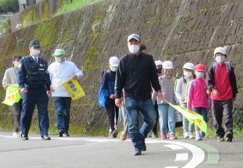 1年生が初めての登校班による登校でしたので、今朝は、学校の先生をはじめ、保護者、見守り隊の方、警察の方など、たくさんの方が学校まで班についてきてくださいました。ありがたいことです。
