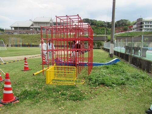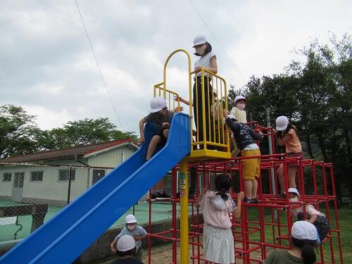 今日から、新しく設置されたジャングルジム(滑り台付き)で遊べるようになりました。早速、子どもたちがたくさん遊んでいました。指導した通り、安全に遊んでいる様子でした。これからも仲良く、たくさん遊んでほしいです。