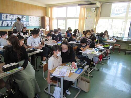 5年生は、裁縫道具の中身についての説明がありました。親子で楽しそうに学んでいました。