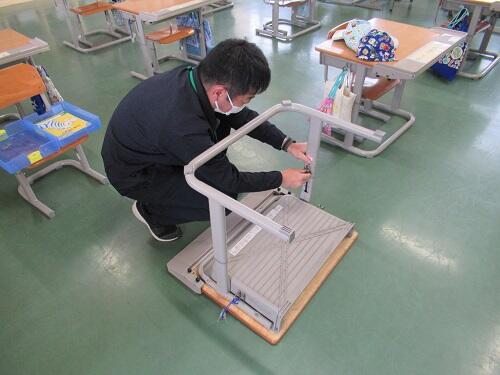 20日(水)より家庭訪問が始まりました。児童のいない放課後の時間を利用して、学級担任以外の職員で児童の机・いすの高さの調整作業を行いました。児童には、ぴったりの机・いすで姿勢よく授業を受けてほしいと思います。