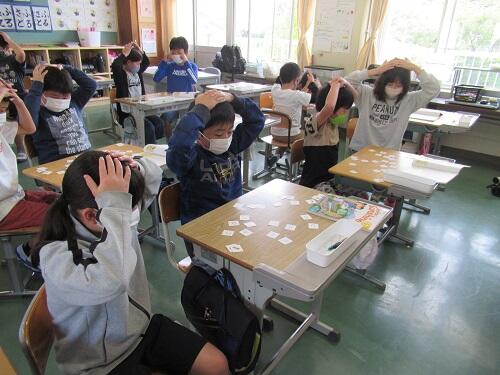 3校時、5年生は英語でした。アルファベットのかるたをしていました。これなら楽しくアルファベットを覚えることができそうです。