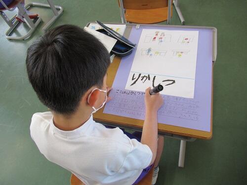 2年生の生活科では、1年生に校内の教室を説明するための資料を作っていました。今度、1年生に校内を案内しながら説明しなければなりません。今後は、上手にできるように説明の練習をしていきます。