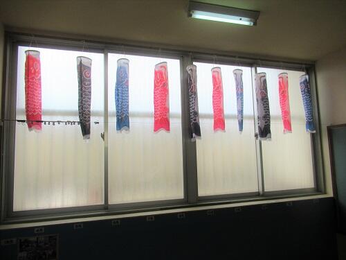 階段踊り場に、鯉のぼりが設置されました。日本の伝統的な行事を理解させることも大切なことだと思っています。