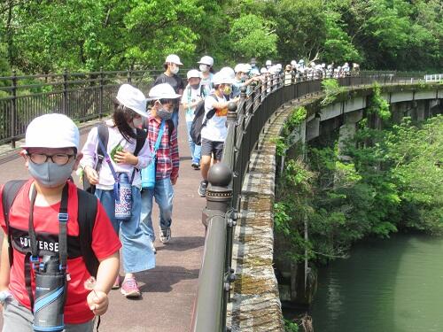 下をのぞき込んで「こわいこわい」と言っている児童もいました。橋は、趣があってとてもすばらしいです。
