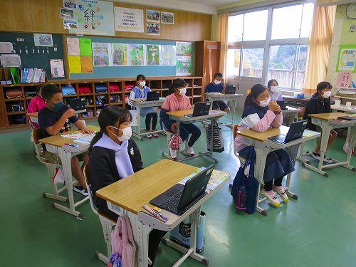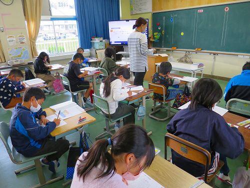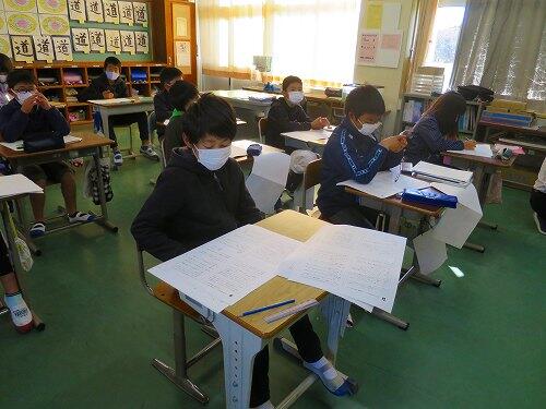 5年生が昨年度のみやざき学習状況調査の問題に取り組んでいました。ふだんの単元テストと違って問題の文章が長く、たくさんの情報から必要な情報を見つける力や条件に合わせた文章に表す力なども必要になります。子どもたちは、真剣に取り組んでいました。