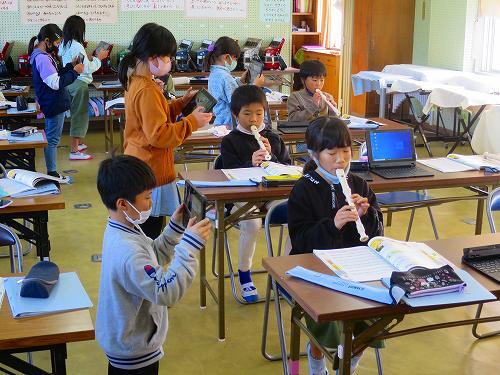 3年生が音楽の時間にリコーダーの学習をしていました。