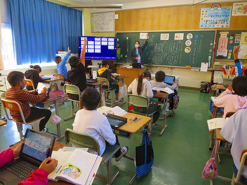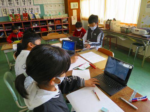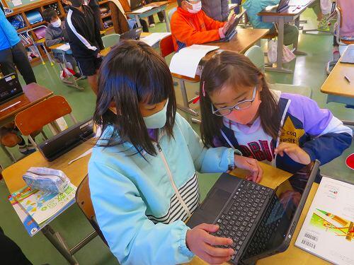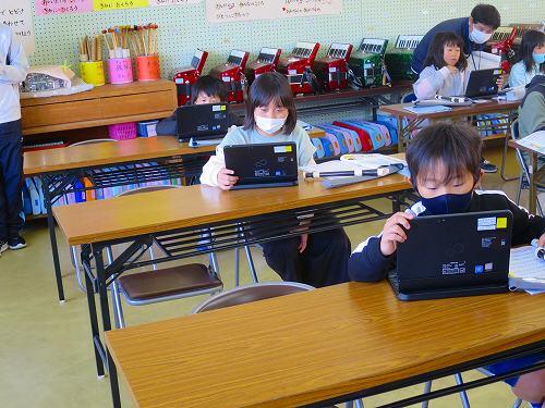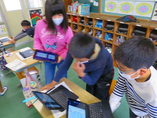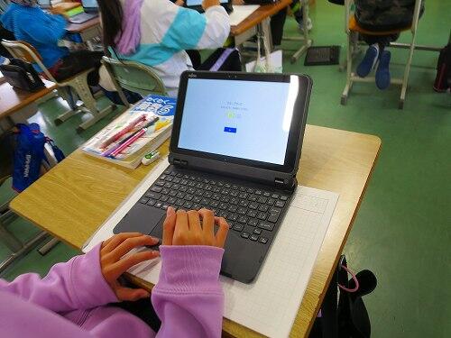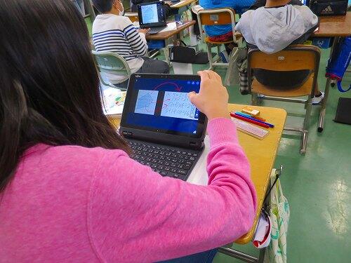 百ます計算などの継続的な取組で、基礎的な計算の力がついてきている様子がよく分かります。タブレットPCで答え合わせをするのが、うれしそうでした。