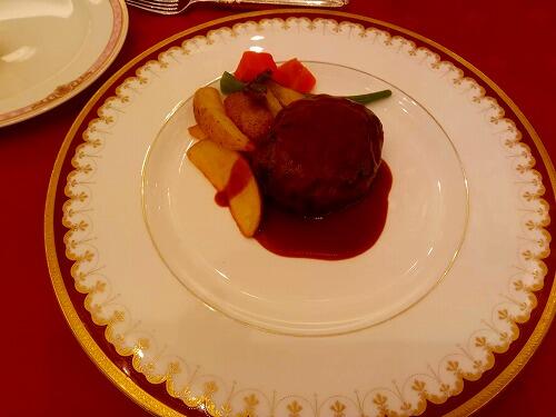 メニューは、おいしそうなハンバーグステーキです。ナイフとフォークを使っておいしくいただきました。食事のあとは、買い物、入浴、そして就寝です。