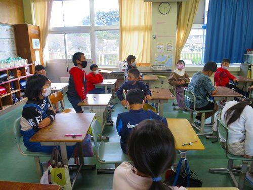 体育館は寒かったですが、子どもたちは元気にあいさつをしたり、校歌を歌ったりして、全校朝会がスタートしました。