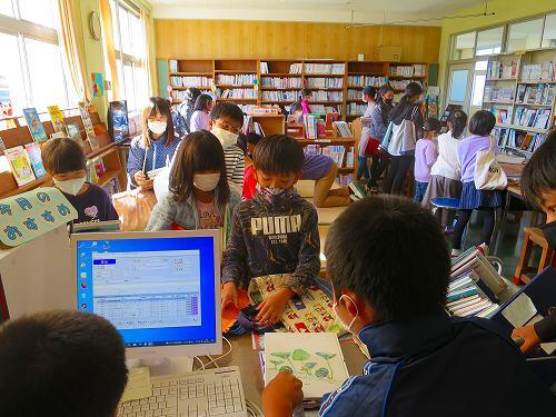 今日の昼休みは、久しぶりに晴れて、気持ちのよい天気でした。外では子どもたちが楽しく遊ぶ様子が見られました。ところが、いつもより子どもたちの数が少なく感じ、図書室へ行ってみると、子どもたちでいっぱいでした。11月の読書月間に合わせた読書ビンゴに取り組んでいました。