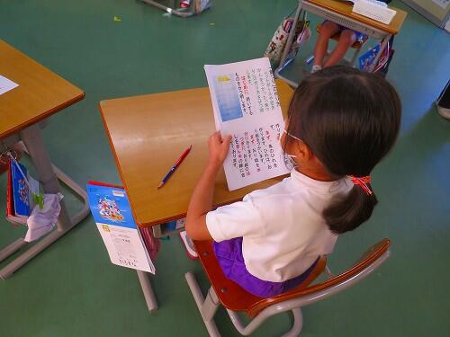 子どもたちは1枚目が終わると先生が時間を教えてくれます。