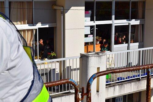 おうちの人たちに見送られて「行ってきます。」と元気に出発しました。