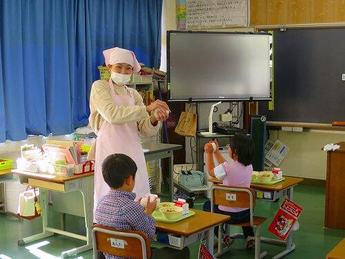 1年生では、おはしの正しい持ち方について、栄養教諭の先生と勉強していました。
