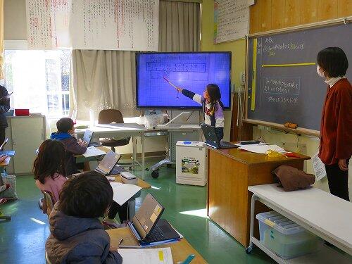 4年生が算数の時間に小数のかけ算の筆算の勉強をしていました。