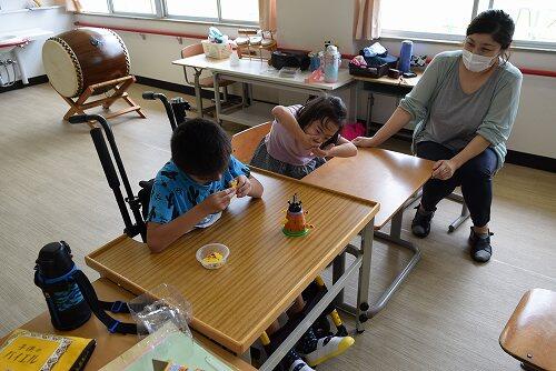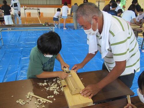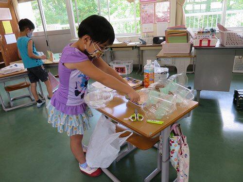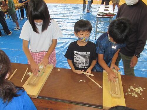 どうしたら上手に浮くかを考えて作っていました。水に浮かべるのが楽しみですね。
