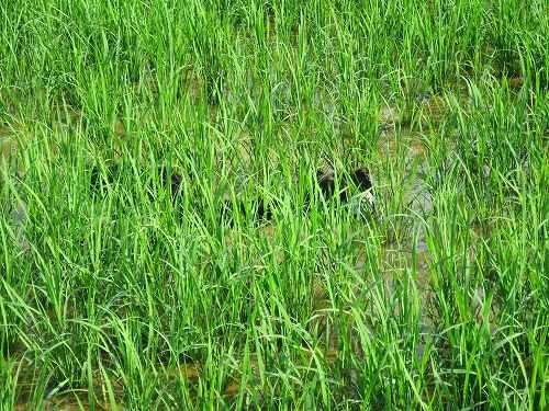 アイガモも田んぼで活躍中です。アイガモは、もちろん大きくなっていますが、それ以上に稲の成長に驚かされます。