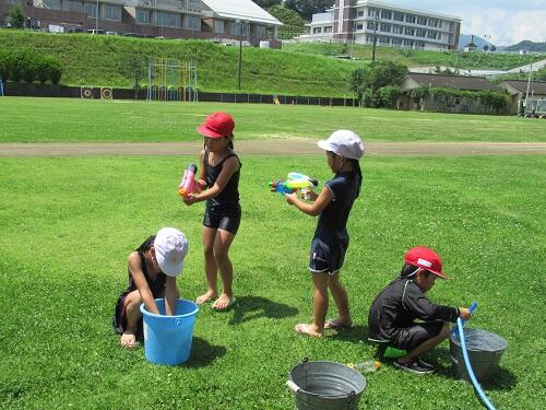 1年生は、「がんばったごほうび」ではありませんが、3校時は生活科の「夏の遊び」で水鉄砲で夏の遊びを満喫しました。