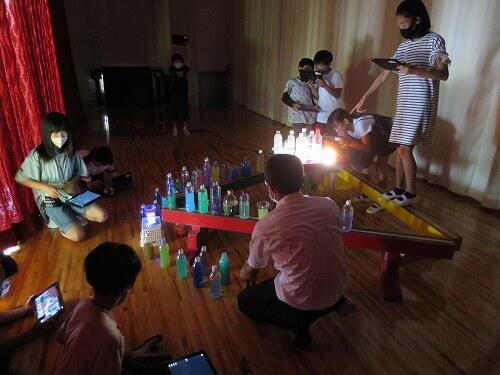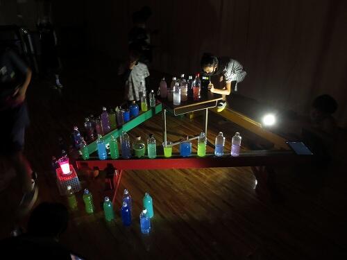 5年生が「光と場所のハーモニー」に取り組んでいました。身近な材料と光源を使って、工夫して空間を変化させる学習です。みんなで協力して楽しく作品作りができました。