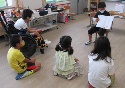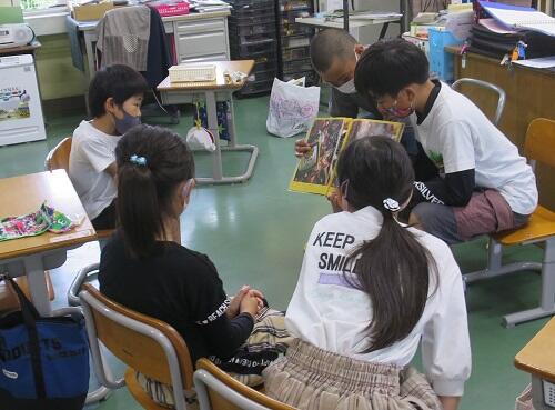 朝の時間を利用して、「なかよし読み聞かせ」を行いました。5・6年生が、これまで下級生のために本選びから練習までを行ってきました。今日は、その本番でした。