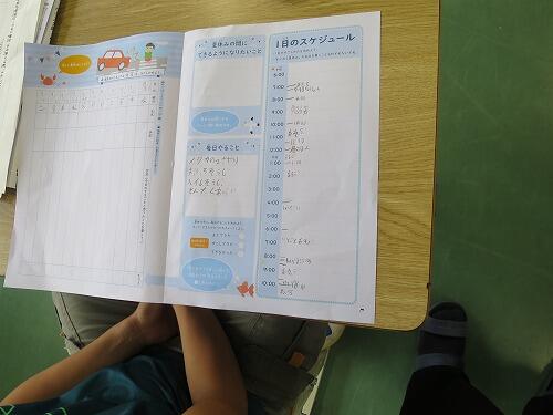 勉強の時間や遊びの時間、お手伝いの時間などを自分で考えて決めていました。しっかり夏休みの生活がおくれそうですね。