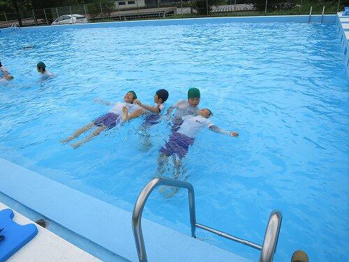 5時間目の5・6年生の水泳の時間は、晴れ間が見えて着衣泳の学習をすることができました。本来、長袖・長ズボンがよいのですが、体育着で実施しました。それでも子どもたちは、水着の上に体育着を着ただけで、体を動かしにくくなることに気づいていました。