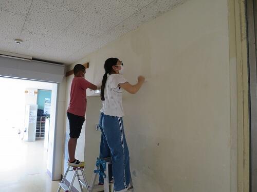 6年生が家庭科の「身のまわりをきれいにしよう」の学習で、学校の汚れているところをきれいにしました。かべや傘立てなど、ふだん掃除することがないところがきれいになりました。