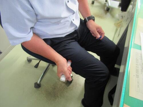 次に、エピペン(練習用)を使って、各自、練習を行いました。