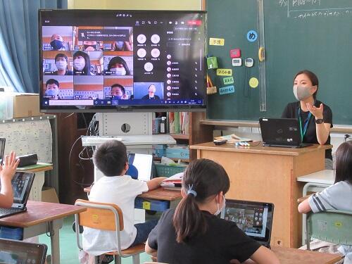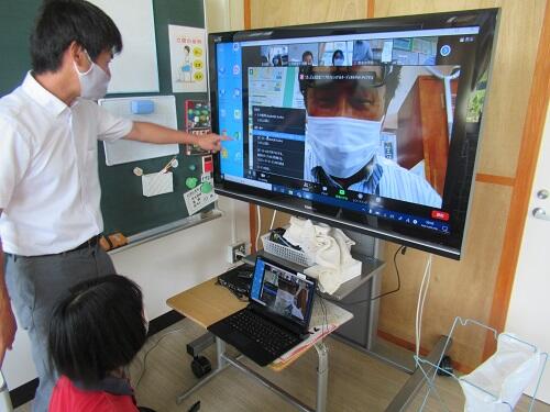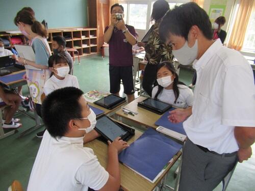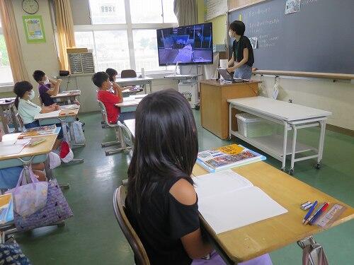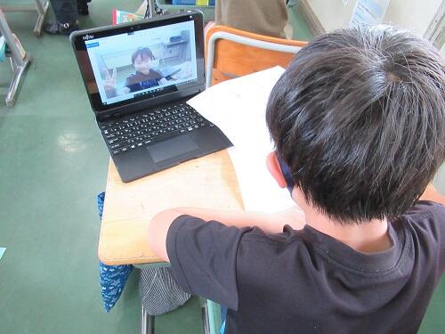 みんなは、タブレットを使って誰なのか予想しました。最後は、「Who are you?」と出題者に質問して答えの確認をしていました。コロナの影響なのか、家族でバーベキューをしたことを紹介している児童が多かったようでした。