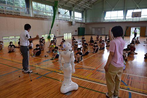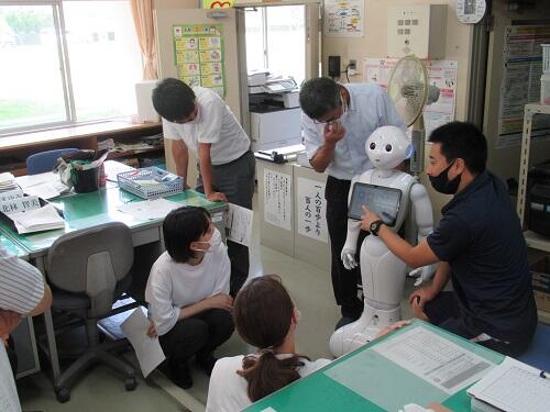 プログラミング教育研修で、ペッパー君の活用方法について研修を行いました。初めにペッパー君の主な活用方法について学び、その後実際に簡単なプログラムを送って、ペッパー君を動かしてみました。2学期からプログラミング教育の実践の一つとして、活用していく予定です。