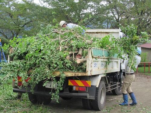 消防団の皆さんが溝にたまった葉や泥を掃除してくださいました。