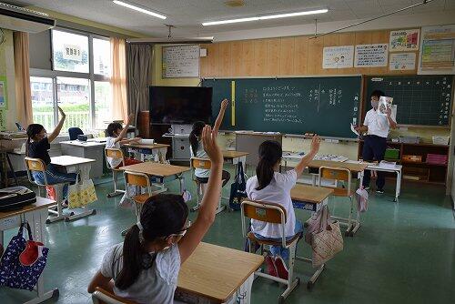 5年生は道徳の時間でした。葛藤場面での登場人物の考えを子どもたちに聞くと、見事に意見が分かれました。話合いが盛り上がっていました。