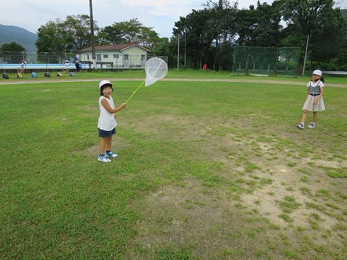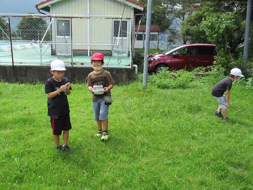 今日は外で虫探しをしました。バッタやトンボ、コオロギ、カマキリなど、いろんな虫を見つけました。虫がよくいるポイントを子どもたちは知っていて、短い時間でたくさんの虫を見つけました。これからの学習が楽しみです。
