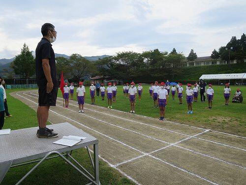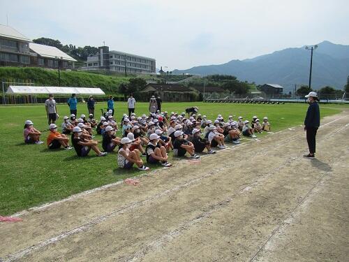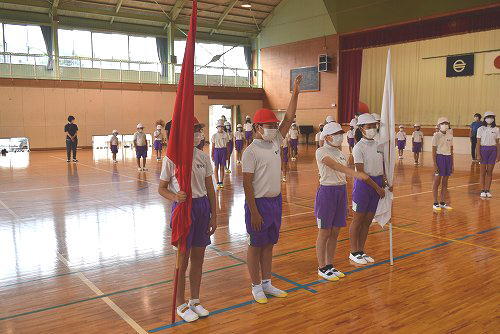 はじめての練習ということで、開会式の立つ位置、入場行進、礼の仕方、退場の仕方などを練習しました。赤白どちらの団もしっかりと頑張ることができました。